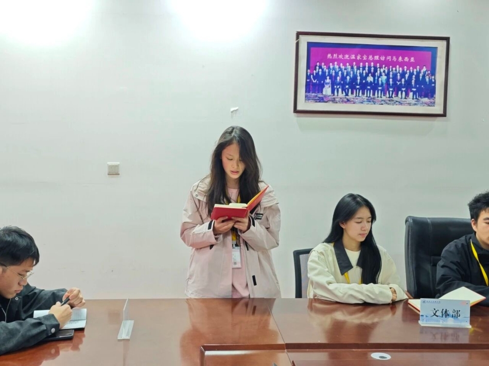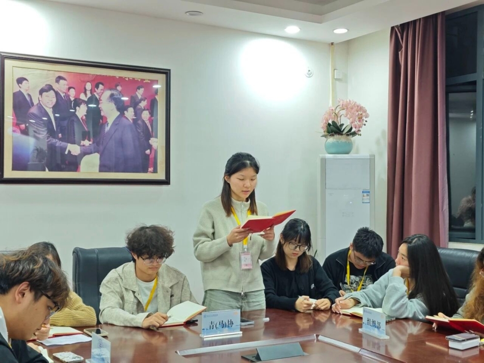 李月主席补充发言。她强调,要聚焦工作细节优化,提升活动策划的创新性与落地效率,加强部门间沟通协作,鼓励干部以身作则,在服务同学中锤炼自身本领,以实干践行学生干部的责任担当。